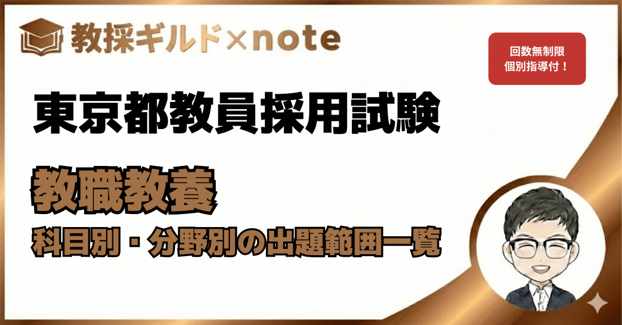 そこで活用してほしいのが、過去10年分の東京都教員採用試験を分析し、分野別の出題範囲と頻度をまとめたこちらのnoteです。