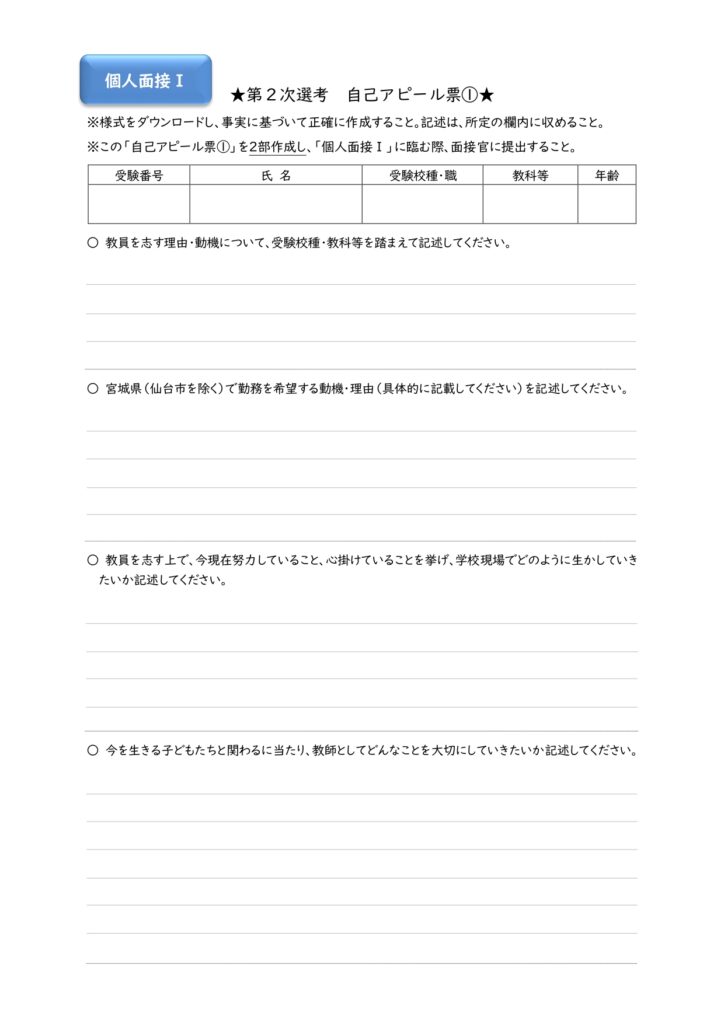 宮城県教員採用試験の自己アピール票