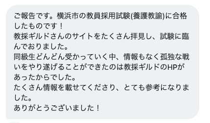 そのギャップを埋めたいという想いから独立し、本格的に教員採用試験対策を始める。2018年3月からは「教員採用試験情報チャンネル(現:教採ギルド)」を立ち上げ、ウェブ媒体を介した情報発信にも力を入れています。