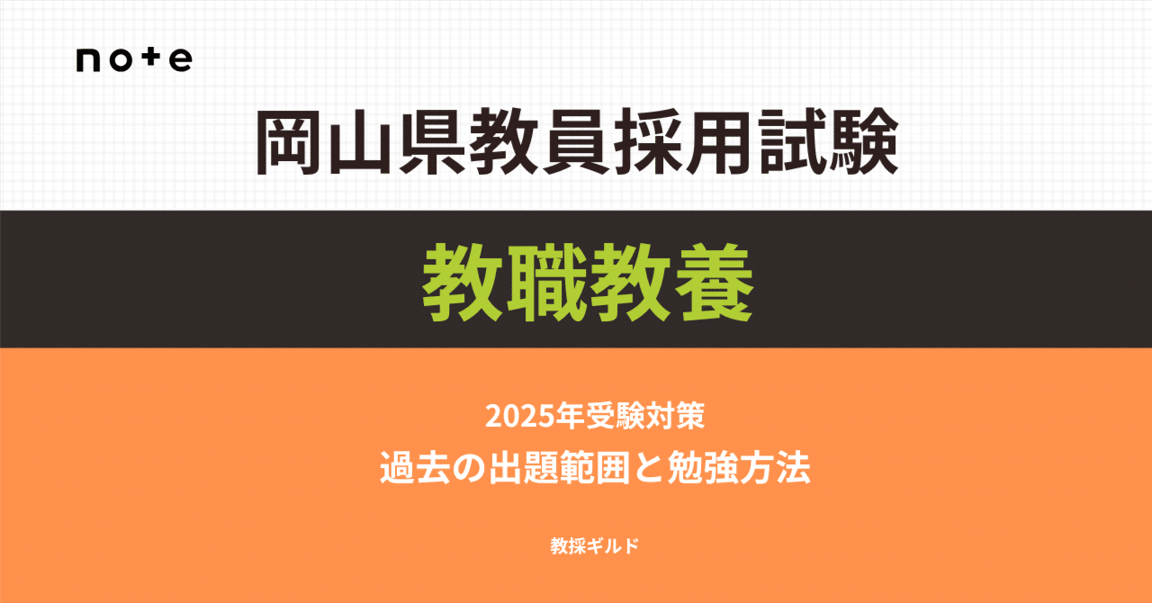 過去10年間の出題範囲を分析したデータを、こちらの「【2024年版】岡山県教員採用試験の教職教養攻略ガイドブック」で公開しています。